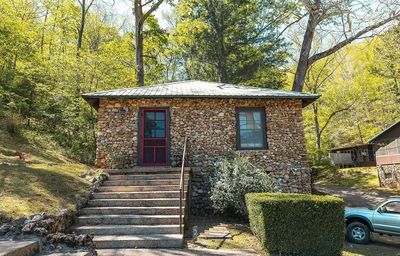 Jack's Cabin is a historic stand alone unit with 3 bedrooms (BR1- queen bed, BR2- queen bed, BR3- two twin beds), 2 full baths, a large living room with full size sleeper sofa, stone fireplace, and wrap around screened-in porch.